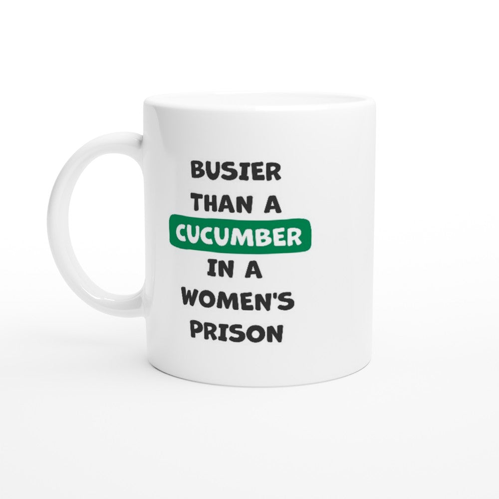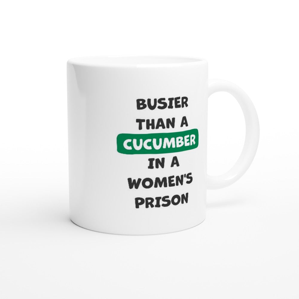 Give the special people in your life a reason to smile with the "Busier Than Cucumber in a Women's Prison" coffee mug—a perfect blend of humour and practicality. This glossy white ceramic mug is more than just a container; it's a thoughtful gift that sparks laughter and joy every morning.