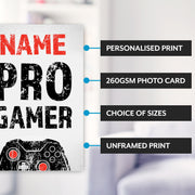 This Pro Gamer poster will look amazing hung in a games room, man cave or as a boys bedroom accessory. This can be given as a gift to your son / brother / dad / uncle or even an Xbox / PS4 geek.