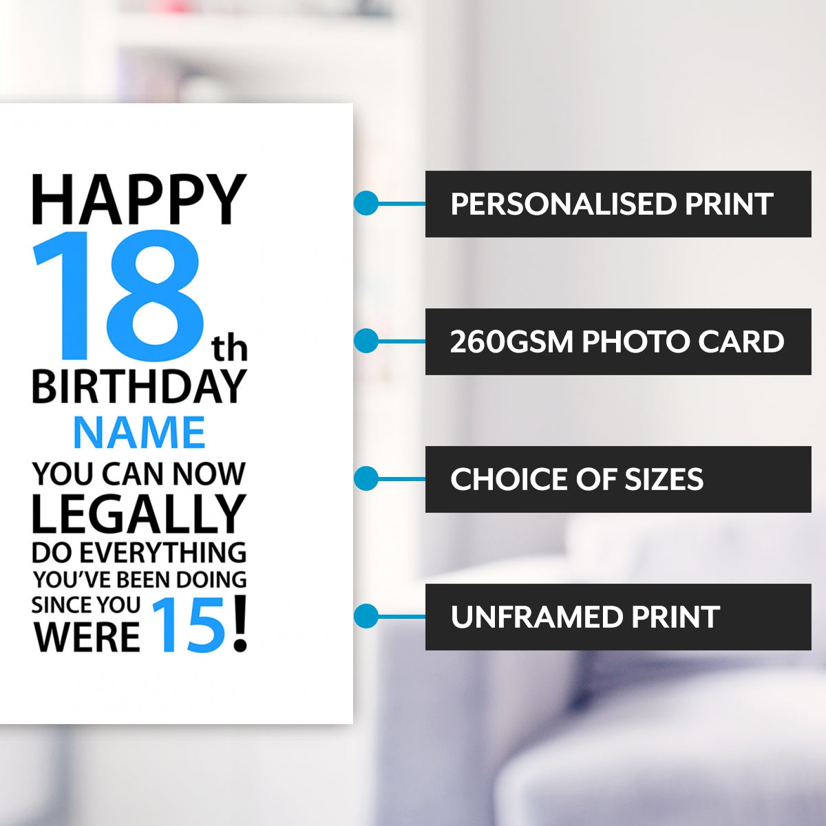 This funny 18th birthday gift for a boy can be personalised with his name, text colour and age at the bottom which makes this a very unique gift.