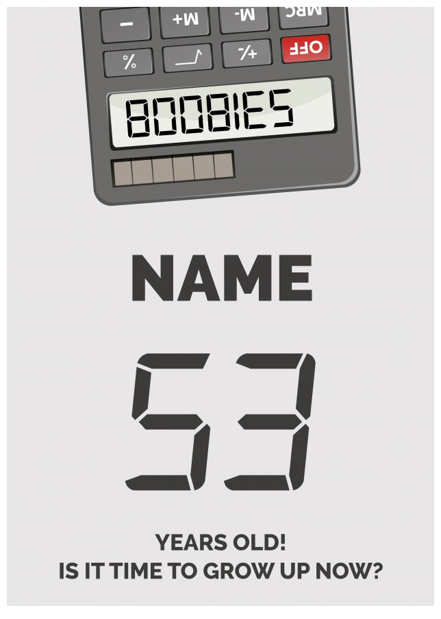 Happy 53rd Birthday Card - Time to Grown Up