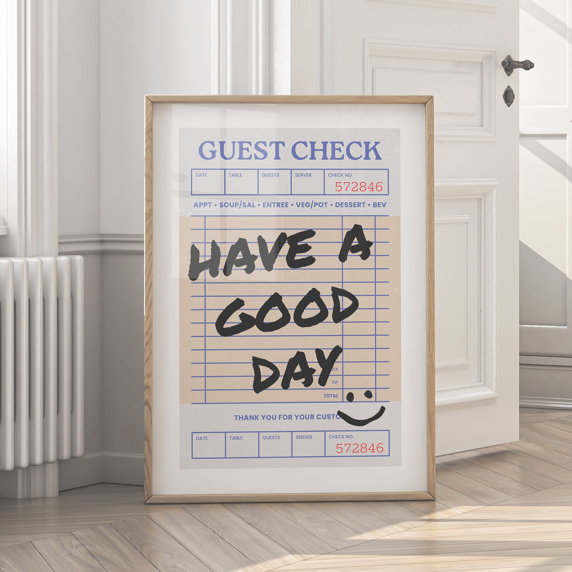 Have a Good Day Print - Retro Guest Check Wall Art | Motivational Quote Poster & Printable Apartment Decor
