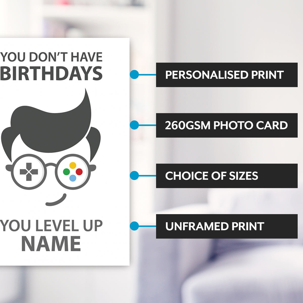This funny birthday gift for a gamer can be personalised with his or her name to make it a very unique gift for them.