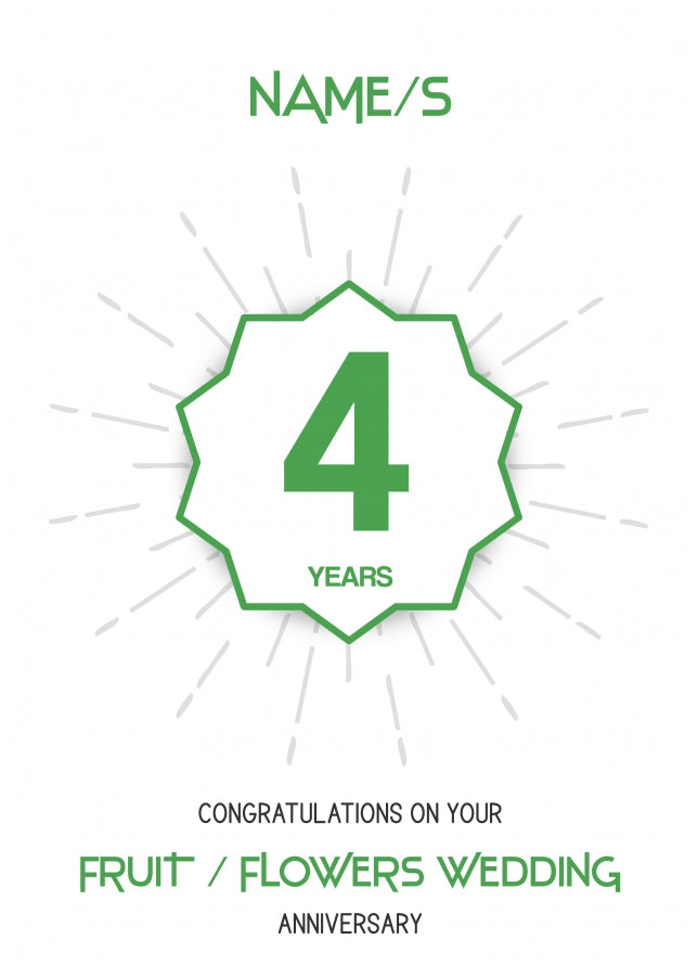 Fruit / Flowers Wedding Anniversary Card for 4th Wedding Anniversary
