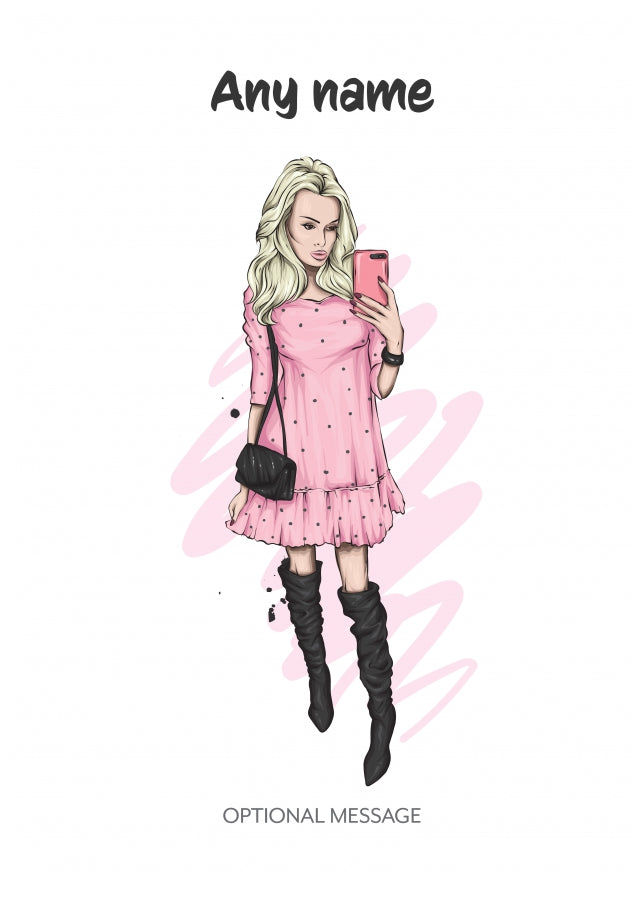 Pretty Blonde taking Selfie - Personalised Girls Birthday Cards