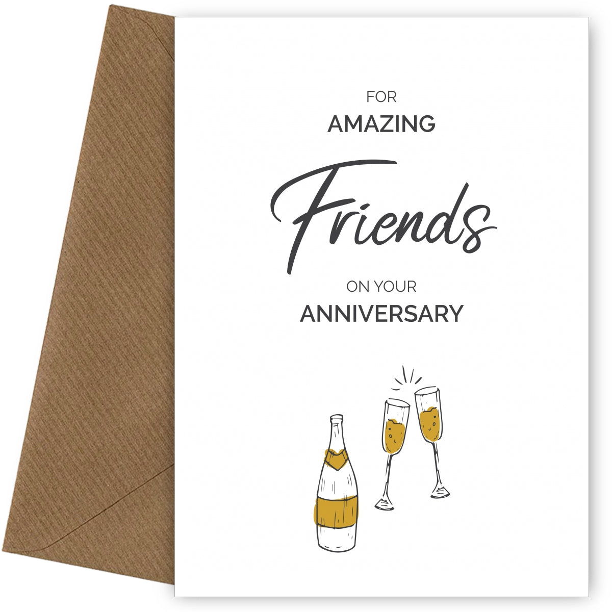 This luxury wedding anniversary card for friends is perfect for a special couple. When a husband / wife reach a milestone anniversary the occasion should be celebrated. This card shows a couple of champagne bottle and flutes in an elegant yet simple design.