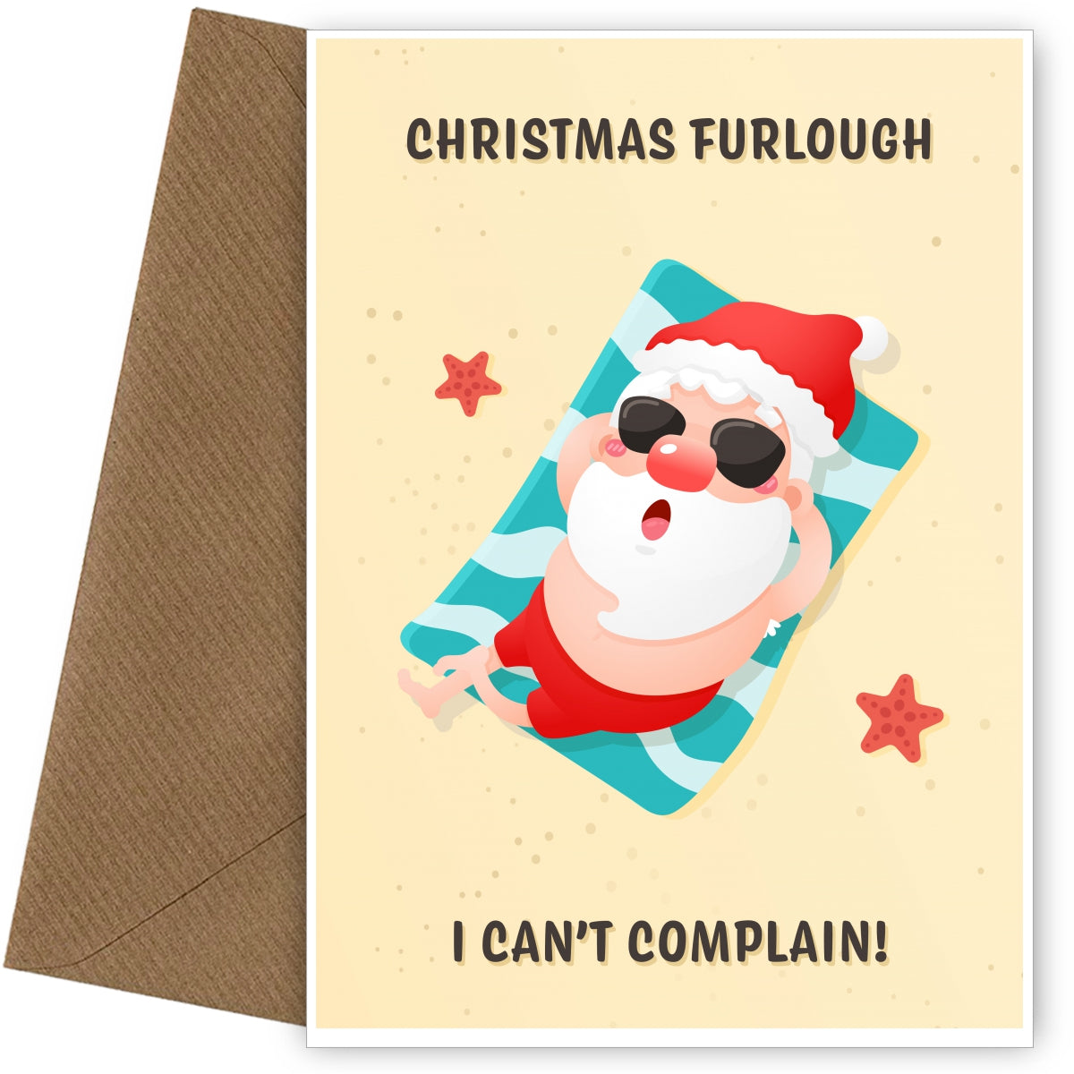 The funniest Christmas card you will see this year. A humorous card with Santa chilling on a beach in the sun.