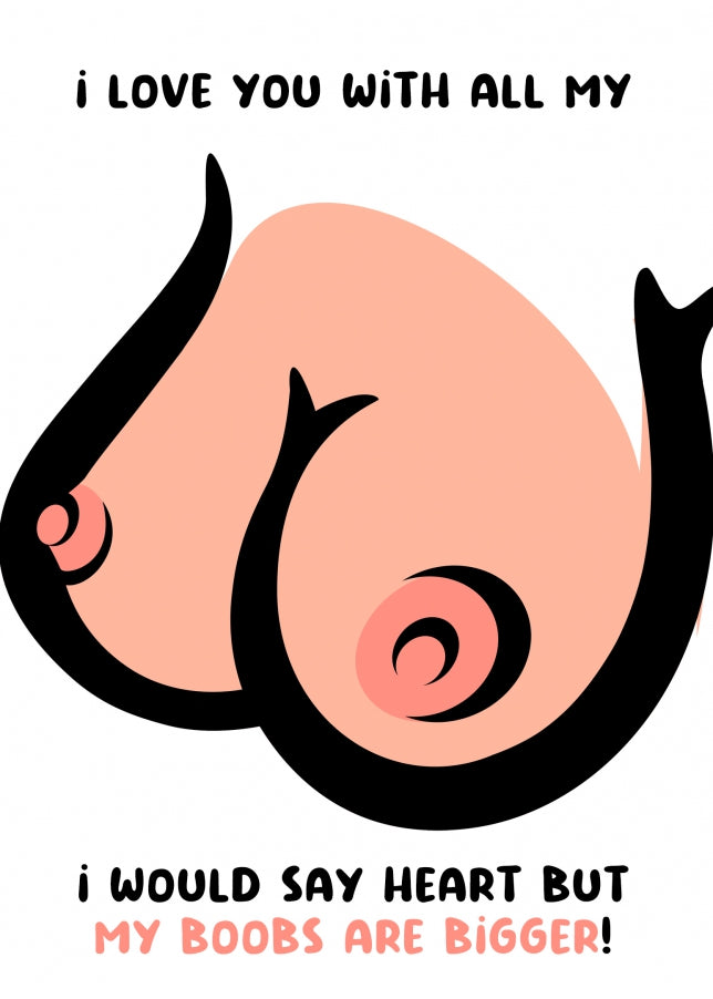 Looking to inject a healthy dose of humour into your Valentine's day celebrations? Then our Funny Valentines Day Card for Him or Lesbian Partner is the perfect choice to say 'Love You With All My Boobs'!
