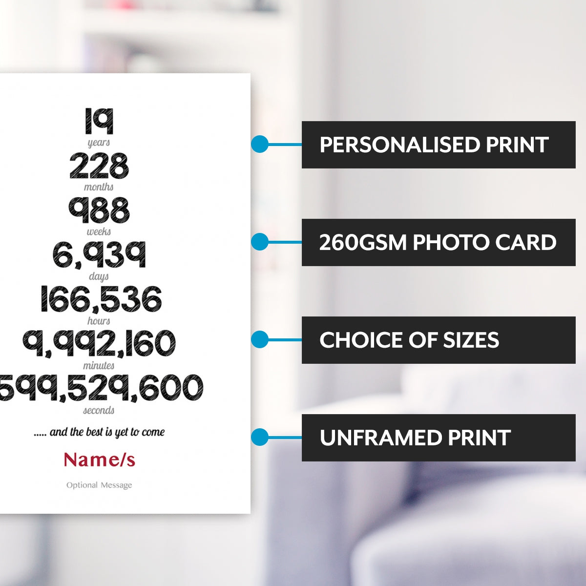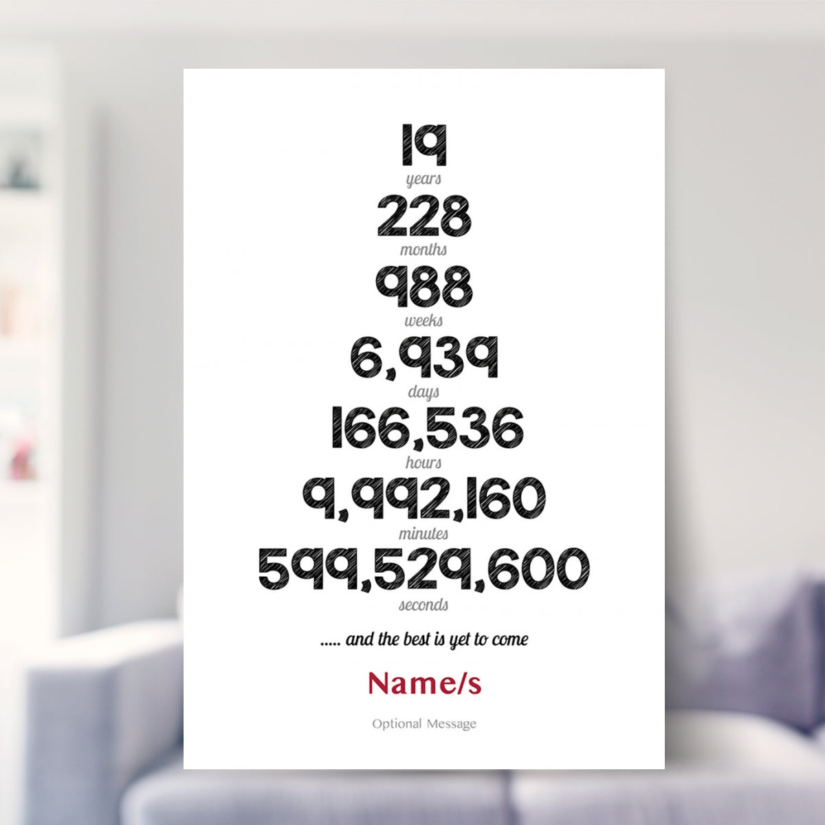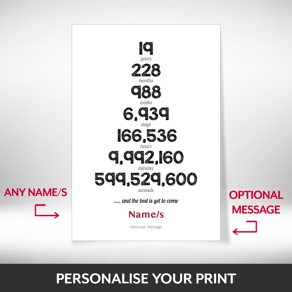 Personalised Numbers 19th Wedding Anniversary Print