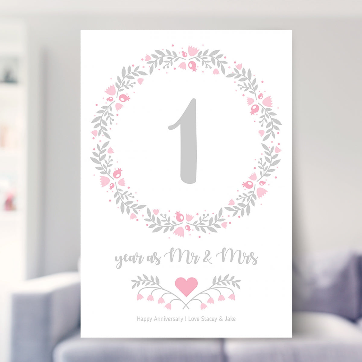 Personalised Floral Circle 1st Wedding Anniversary Print (Paper)