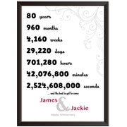 If you're looking for a unique wedding anniversary gift then this could be what you need. This stunning personalised print shows the length of time in number from years to seconds.